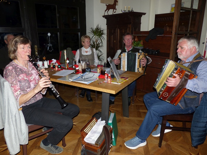 Beim Schierlinger Musikanten-Stammtisch ist es Brauch, dass im Dezember zuerst alle Musikanten eine Runde Advents- oder Weihnachtslieder spielen. Trotzdem war es nicht ganz „staad“, denn schließlich gibt es ja auch Weihnachtslieder zum Mitsingen. |