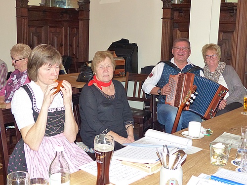 Heinz Langenmantel begrüßte die Anwesenden, stellte die Musikanten vor und spielte dann mit Albert und Christa Eschlbeck, Marille Gangl, Jan Grau, Werner Grünauer, Inge Heinrich, Schore Hochreiter, Stefan Mally, Helmut Meinl, Maria Steinhauser und Oswald Wendl abwechselnd oder zusammen altbekannte Lieder zum Mitsingen und schöne Instrumentalstücke zum Zuhören und Schunkeln. Die Musikanten erfüllten mit ihren Steirischen Harmonikas, Gitarren und einem Akkordeon gerne Musikwünsche der Besucher. Am Ende des Abends bestellten die Stammgäste gleich wieder ihre Tische für den nächsten Musikanten-Stammtisch am 1. Februar um 19.30 Uhr. Für diesen Termin können Musikanten und Besucher, die gerne Live-Musik hören und Spaß haben wollen, ab sofort unter der Telefonnummer 09451/9488440 Plätze reservieren. |