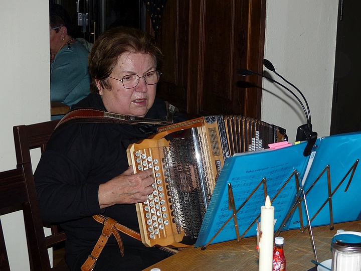 Zum ersten Mal war Andrea Bauer mit ihrer Steirischen dabei. Neben weiteren Steirischen Harmonikas gab es noch die Gitarre von Christa, das Tenorhorn von Ossi und die Klarinette von Maria zu hören. |
