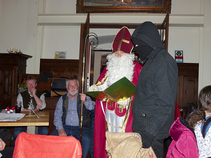 In der Weihnachtsrunde trugen Christa Eschlbeck, Werner Grünauer und Roswitha Geiger zwischen den Liedern Texte und Gedichte vor. Auch der Nikolaus (Stephan Dobmeier) besuchte den Stammtisch mit seinem Knecht Ruprecht (Daniel Langenmantel). Während der Nikolaus von seinen Erlebnissen mit Kindern berichtete, den Musikanten-Stammtisch lobte und die Musikanten ermunterte, weiterhin fleißig daheim zu üben, schlich Knecht Ruprecht durch die Reihen und wedelte mit seiner Rute. |