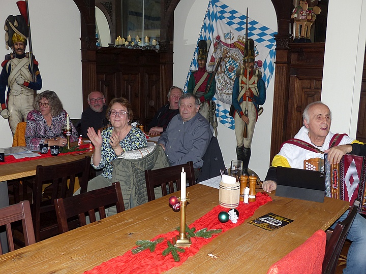 Beim Schierlinger Musikanten-Stammtisch ist es Brauch, dass im Dezember zuerst alle Musikanten eine Runde Advents- oder Weihnachtslieder spielen. Trotzdem war es nicht ganz „staad“, denn schließlich gibt es ja auch Weihnachtslieder zum Mitsingen. |