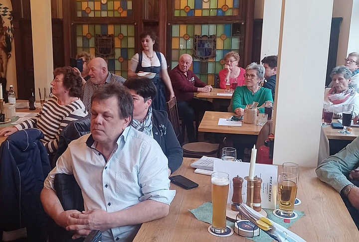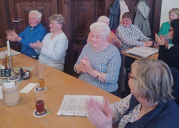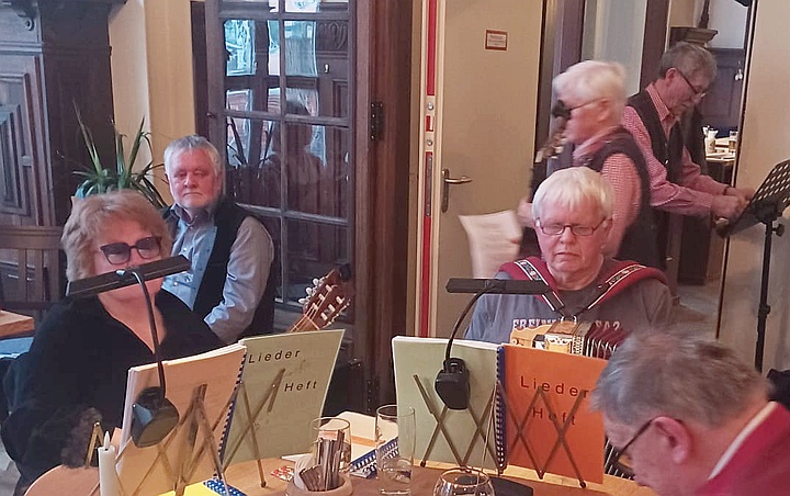 Sie spielten mit Steirischen Harmonikas und Gitarren reihum oder zusammen schöne altbekannte Ohrwürmer, Schlager und Hits zum Mitsingen, zum Lachen, zum Schunkeln oder einfach nur zum Zuhören. Dank der ausgeteilten Texthefte konnten die Besucher bei vielen Liedern mitsingen. Dazwischen gab es Lachmuskel-Training mit Witzen. Die Musikanten bekamen viel Applaus für ihre Stücke, auch Lisa Schmid, die zum ersten Mal bei diesem Stammtisch war. |