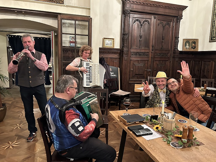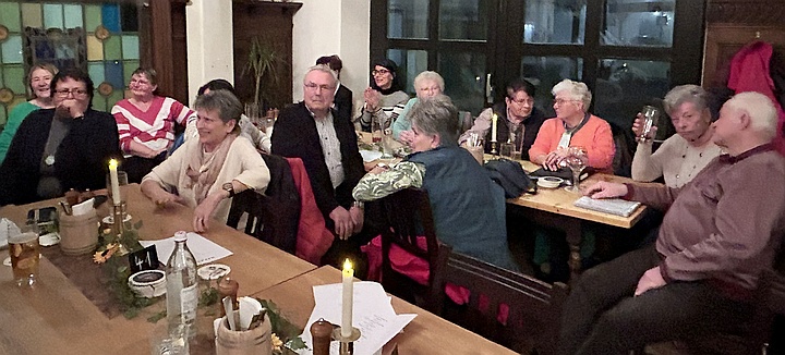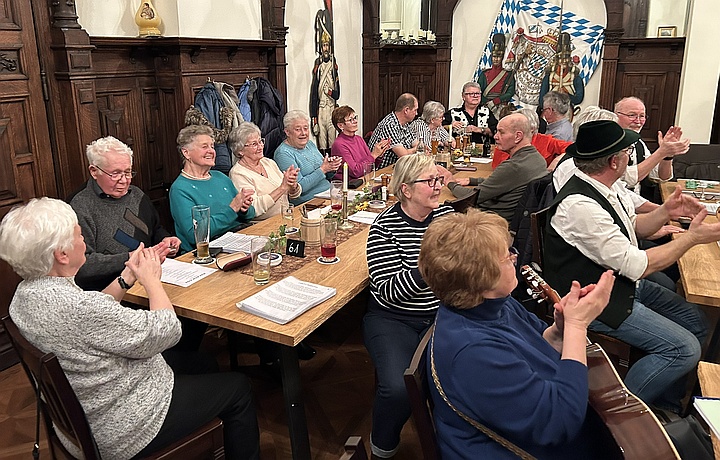 Beim Schierlinger Musikanten-Stammtisch war der Saal im Bräustüberl bis auf den letzten Platz besetzt. Die Musikanten verteilten sich im ganzen Raum und spielten reihum Faschings-, Wirtshaus- und Schunkellieder. Zwischendurch sorgten Witze noch zusätzlich für Stimmung. |