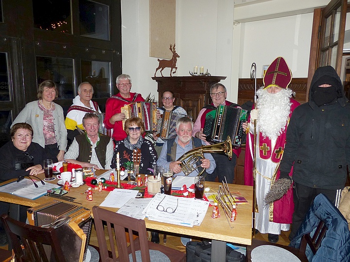 Das sind die Musikanten, Sänger und Witzeerzähler samt Nikolaus und Krampus vom Musikanten-Stammtisch am 6. Dezember 2025. |